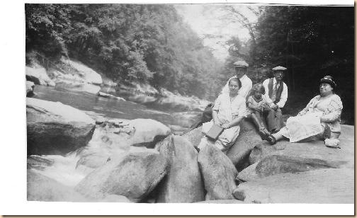 McConnells Mill State Park is the setting for this picture. It was taken circa 1927, The young girl is my mother Gerda Schridde and to the left are my grandparents Anna Bartels and Willi Schridde. I had wondered who the couple next to them are? Is the man with the vest the elusive William Bartels (Anna Bartels Uncle)? Who is the woman, I think one of the Bartels sisters, and who took the pictures, I know that one remains unanswered. The suspected William Bartels appears to old to be Anna's brother August, because August would be in his early twenties and that man appears to be in his forties or fifties.